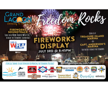 Freedom Rocks fireworks will light up the sky once again, in celebration of our nation’s Independence Day. The fireworks will launch at 8:45 PM on July 3rd from the middle of the of the Grand Lagoon near the marinas. You will be able to listen to the soundtrack to the fireworks on News Radio 102.5 FM.
